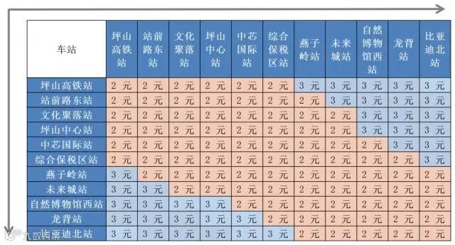 深圳市坪山云巴1号线票价坚持同网同价原则,采用与深圳地铁一致的里程分段计价方法,一期单程最高票价3元。