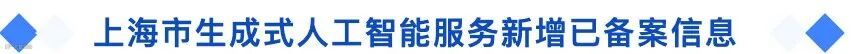 为进一步促进上海市生成式人工智能创新发展和规范应用,加快推进上海人工智能发展高地建设取得新的更大突破,上海市网信办会同相关部门按照《生成式人工智能服务管理暂行办法》要求,有序开展我市生成式人工智能服务备案工作,现将我市已备案信息予以公告。