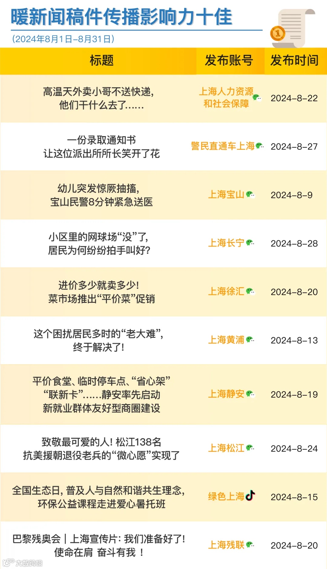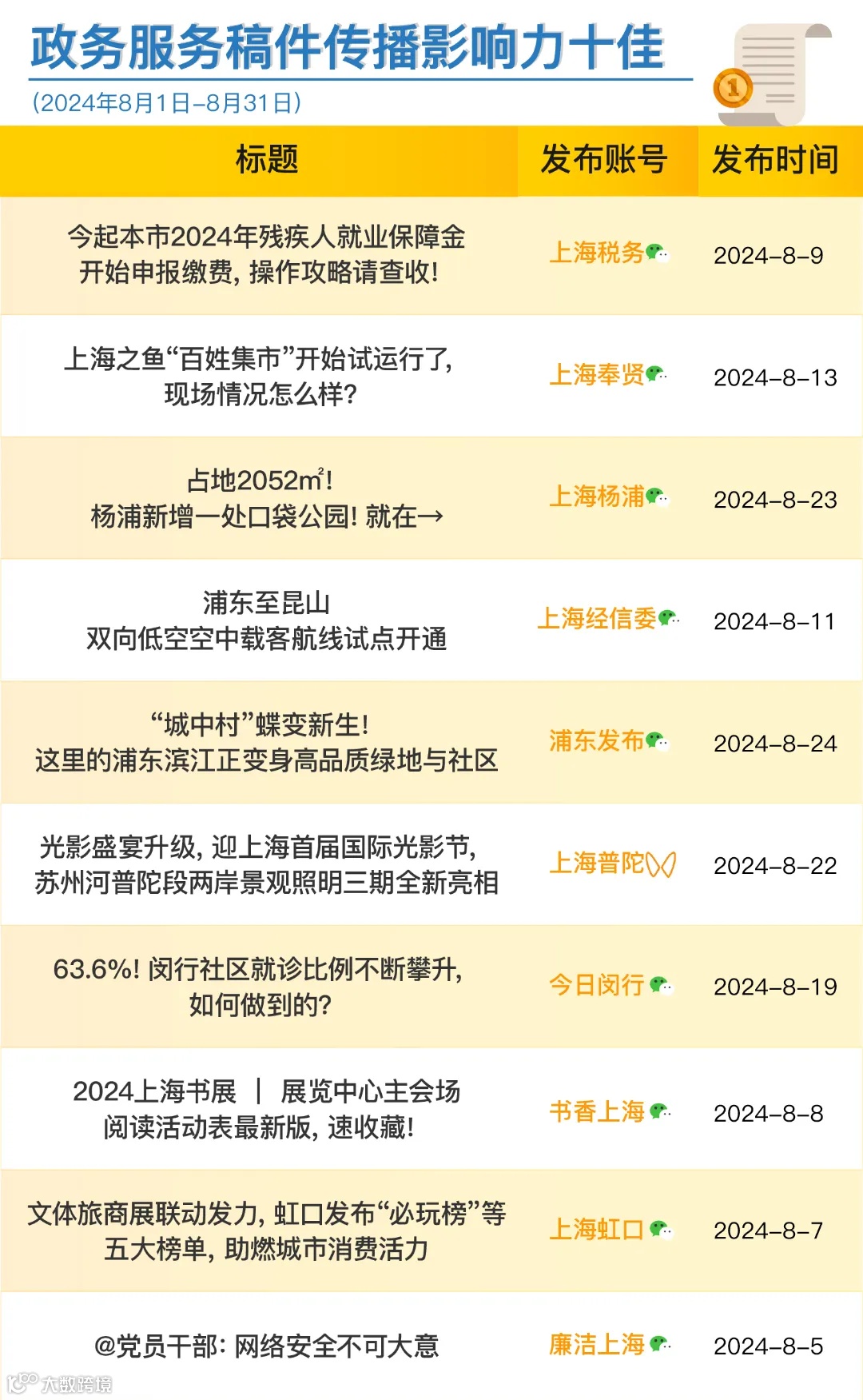 市委网信办今天发布上海政务新媒体2024年8月榜单。