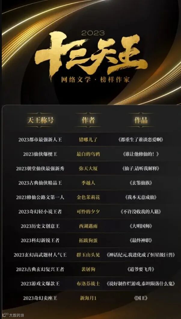 阅文集团发布2023网络文学榜样作家