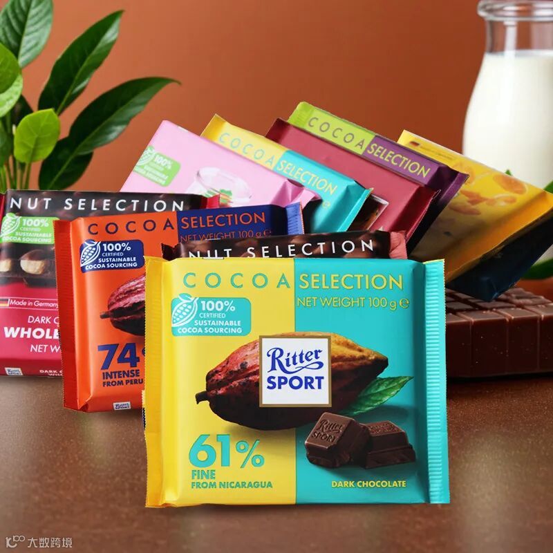 • Ritter Sport 瑞特滋巧克力(德国):经典的方形设计,坚持使用真坚果、真果干。每一块都承载着德国百年的严谨工艺,口感丰富多元。