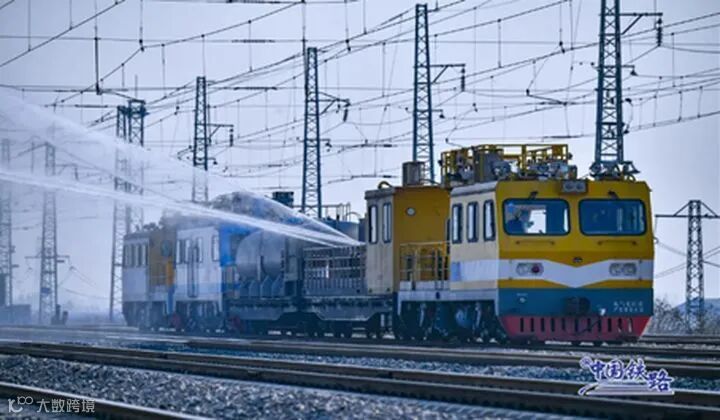 轨道上的水箭龟,学名水冲洗列车,配备四门高压水炮,可谓虎虎生威。由于接触网绝缘子裸露在外,若表面积污过多,会引起污闪跳闸现象发生,这类车辆专门对接触网绝缘子进行带电水冲洗作业。
