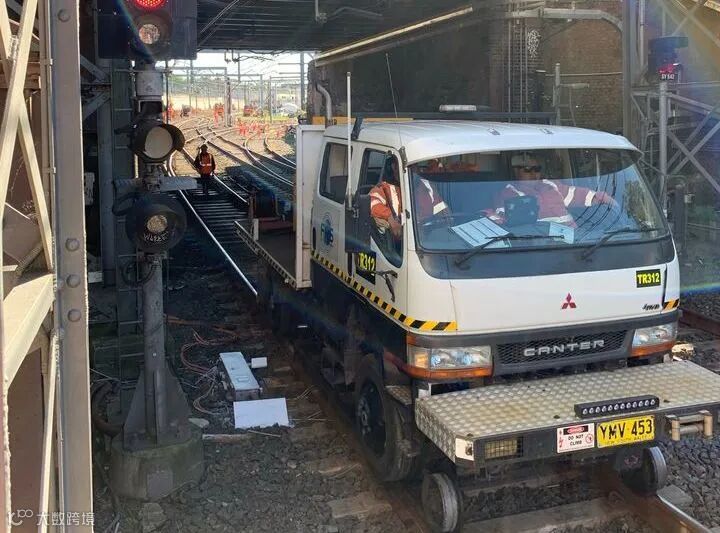 图中是澳洲一种比较特殊的铁路维护车辆,英文名为Hi Rail。它们是改装过的汽车,平时可以在公路上正常行驶,需要在铁路上行驶时就把可折叠的轮对伸出来,在铁路上行驶。它们可以执行铁路检测、铁路维护、事故处理、人员运送等任务,很适合在澳洲的铁路系统中使用。