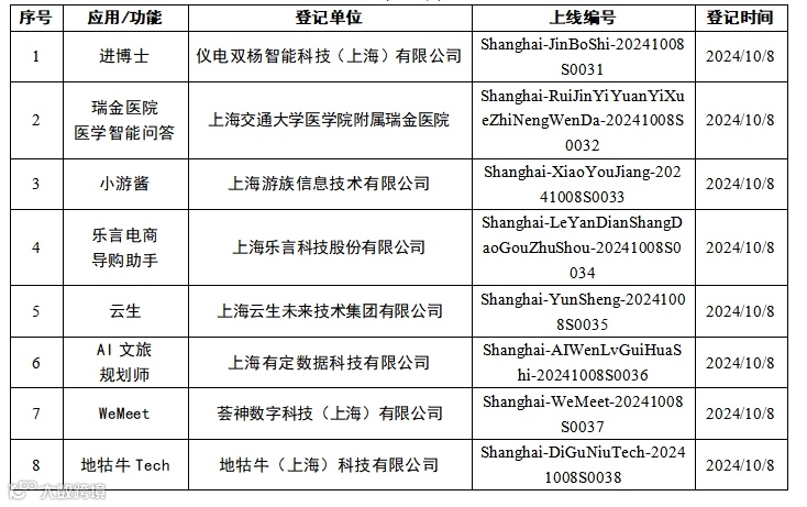 5、上海市生成式人工智能服务登记信息公告(8月30日)