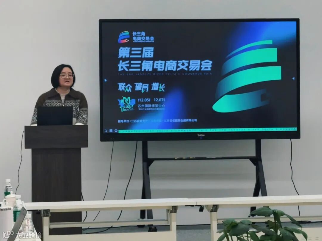 最后,江苏贸促国际会展有限公司项目经理进行了主题分享,详细介绍了2025长三角电商交易会的整体情况、配套活动、宣传推广以及政策扶持,为参会企业参展提供了丰富的行业信息和合作机会。
