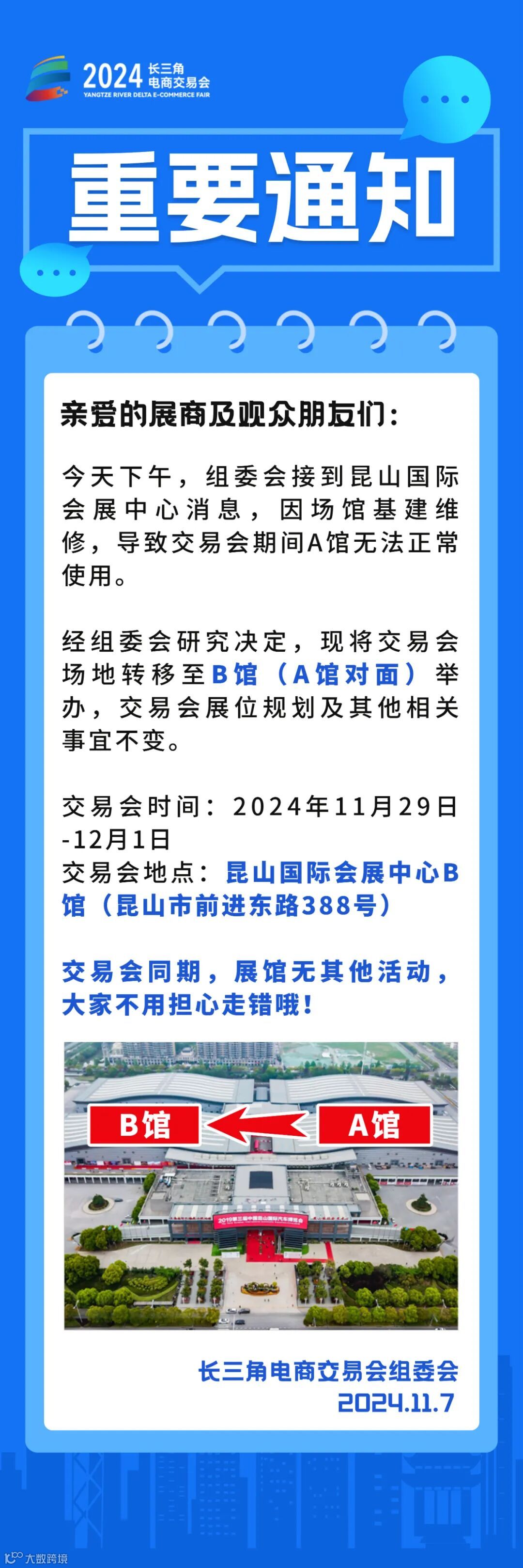 重要通知|2024长三角电商交易会场馆调整至昆山国际会展中心B馆