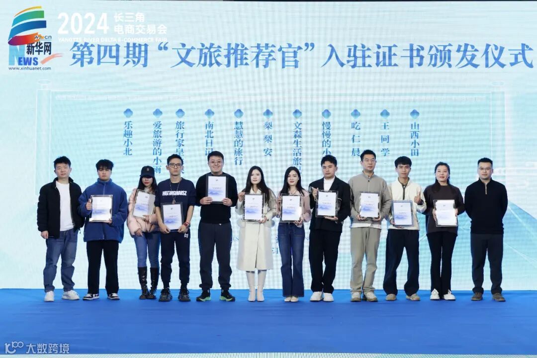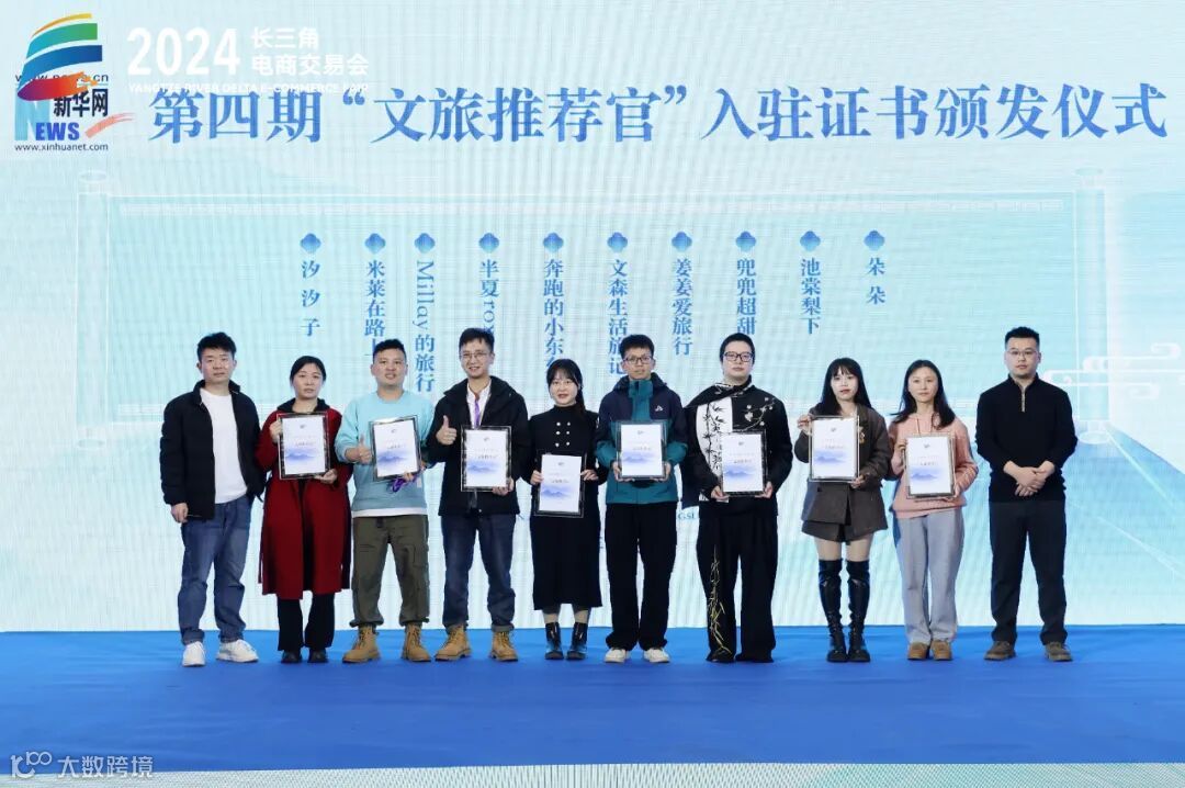 当天下午,组委会联合新华网举行“新华文旅推荐官”授牌仪式,来自全网近200位百万级粉丝主播达人受邀到场选品授牌,其中500万粉丝量以上的主播达人10余人,粉丝总体量近3亿人。
