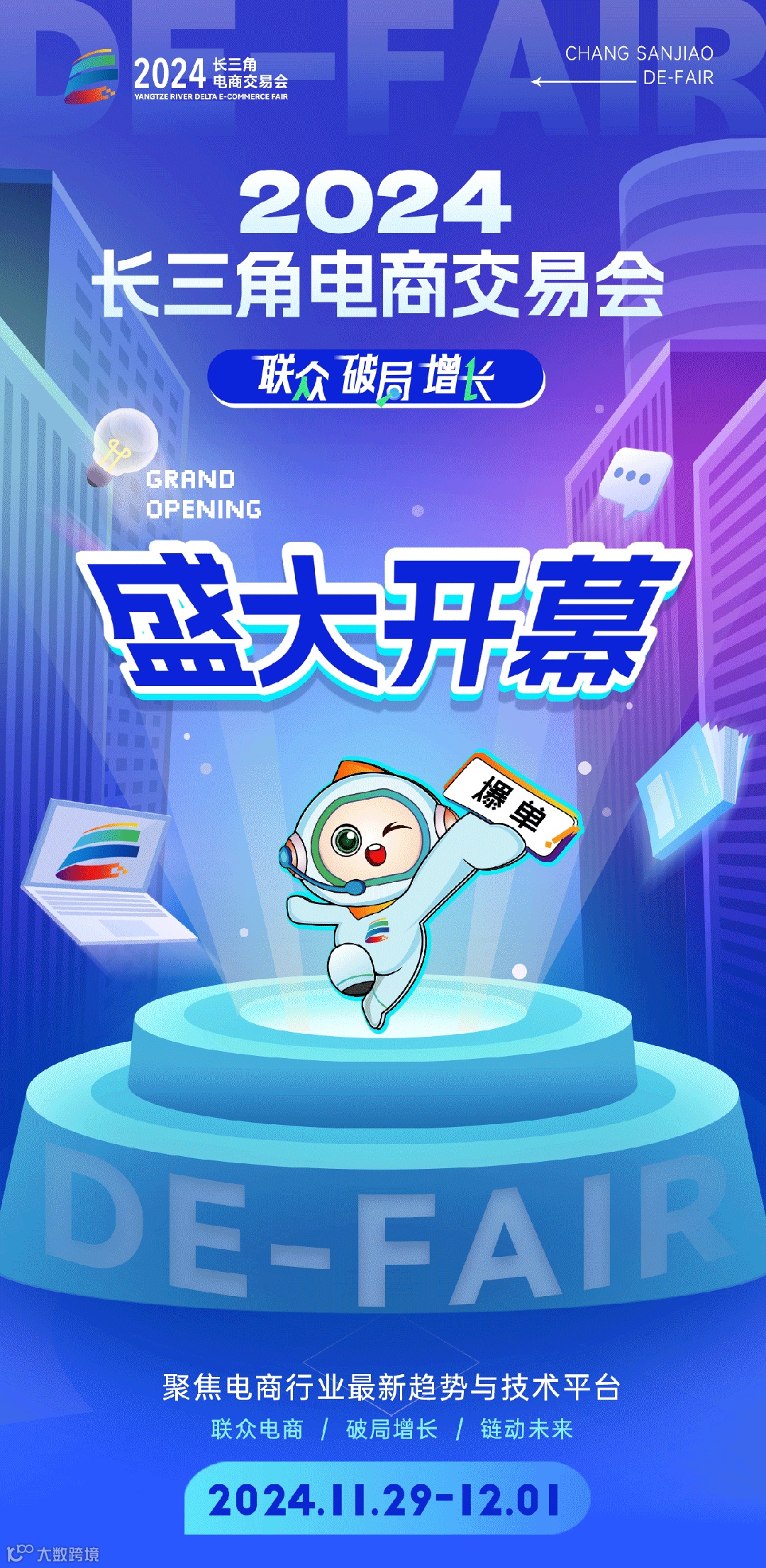 2024年11月29日,2024长三角电商交易会于昆山国际会展中心B馆盛大开幕,并将开展为期3天的展示展销。