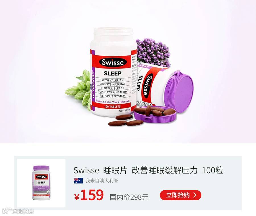 Swisse睡眠片,优质配方,含有镁和药草(包括缬草),有助于舒缓神经紧张,促进自然、舒适的睡眠。