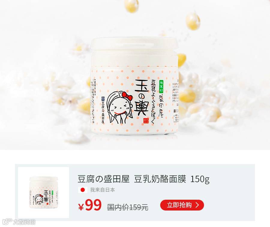 豆腐の盛田屋梨花豆腐乳酪美白保湿面膜。天然润滑,补水保湿,美白滋润,“三无”添加,温和养肤。学生党的心头爱面膜。