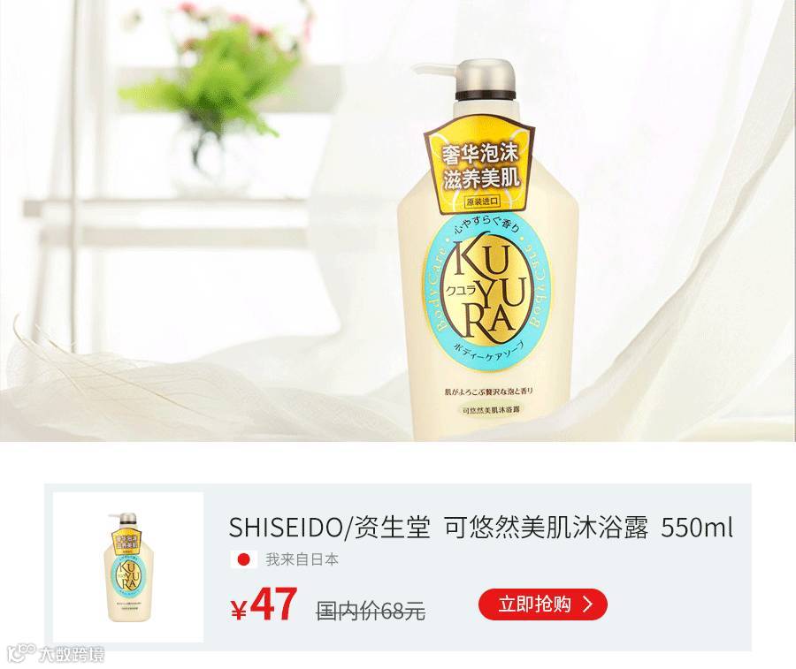 如沐奢美宠爱,悠享泡沫时光—日本可悠然美肌沐浴露。富含有效肌肤护理成分、维生素E保湿、泡沫细腻绵密、舒缓型香草香、肌肤水润柔嫩、全家老少适用。让沐浴不止清洁更是护肤。