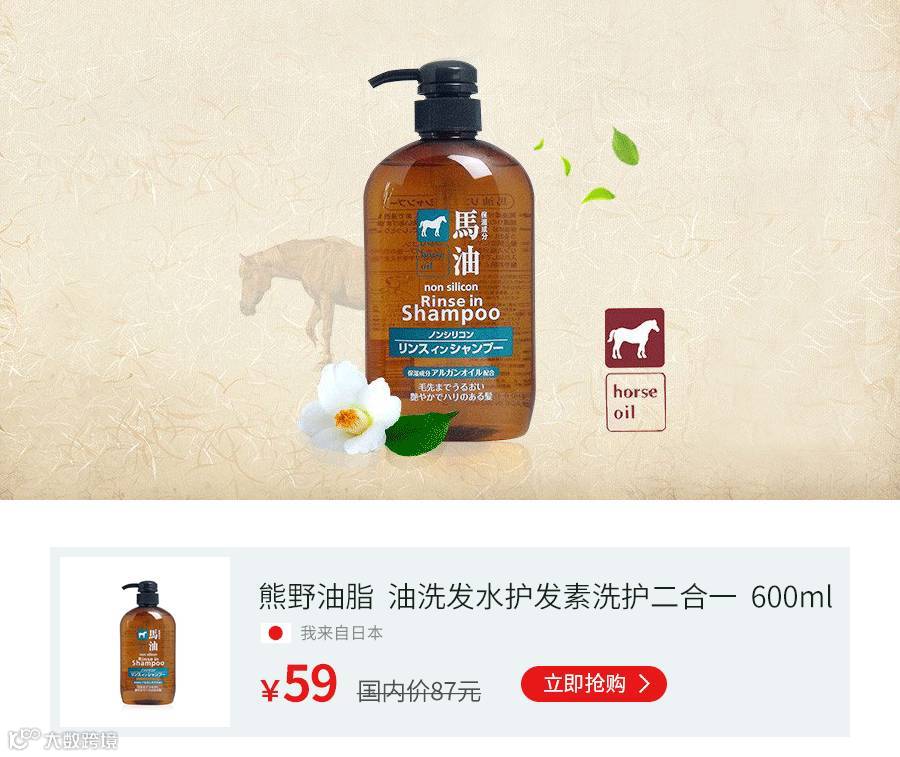 日本五星温泉圣地的超人气单品,全面修护,划时代洗护新体验。天然弱酸, 纯净马油, 无硅真滋润。岛国妹纸人手一瓶的节奏,效果妥妥儿的。