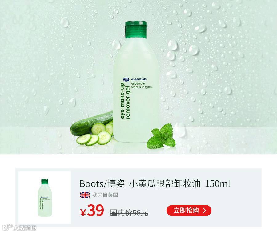 小黄瓜眼部卸妆油。天然黄瓜芦荟植物萃取精华,清爽不油腻;细腻绵密,温和洁净不伤肤;补水嫩肤,保持肌肤弹性。眼部专用,清爽温和不残留。