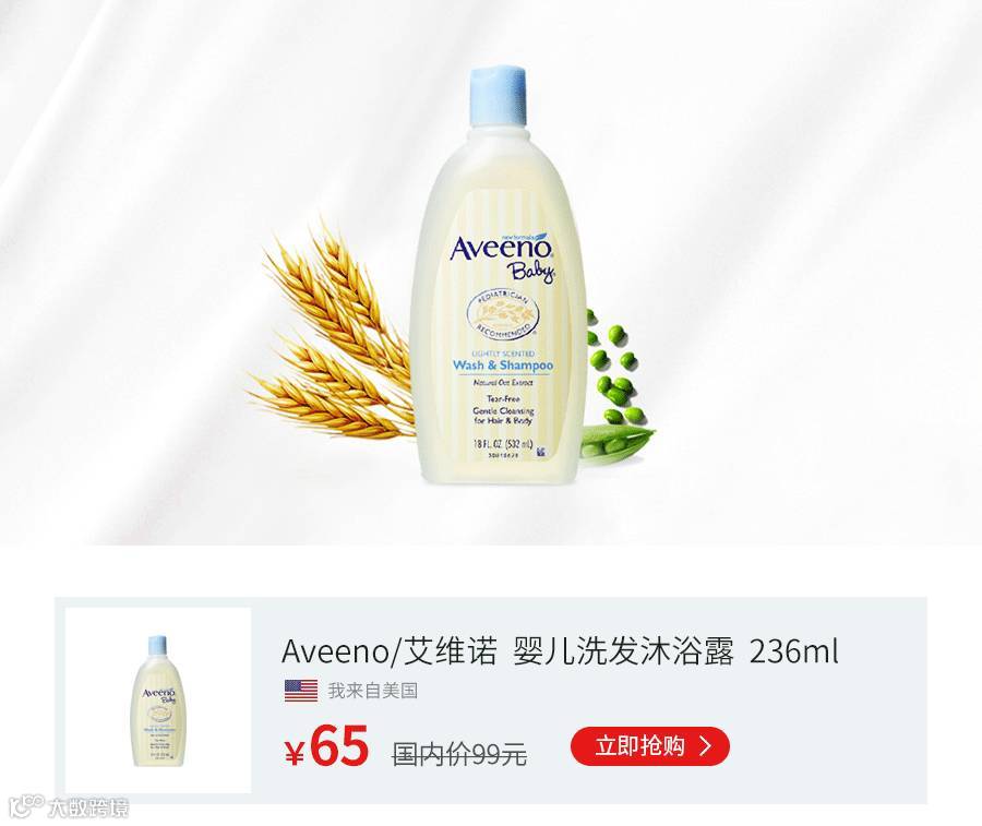 Aveeno天然燕麦婴儿无泪洗发沐浴二合一