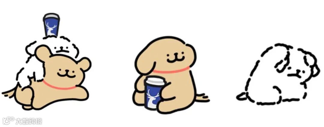品牌选择与不同类型表情包IP进行合作,是紧紧贴合表情包的特质来制定新品主题的。就拿线条小狗和瑞幸的合作来看,联名产品上诸多创意元素,都是围绕线条小狗在进行,而瑞幸的元素并不多,但,瑞幸退其后,反而能给自身带来流量和曝光度,可见线条小狗的魅力不同凡响。
