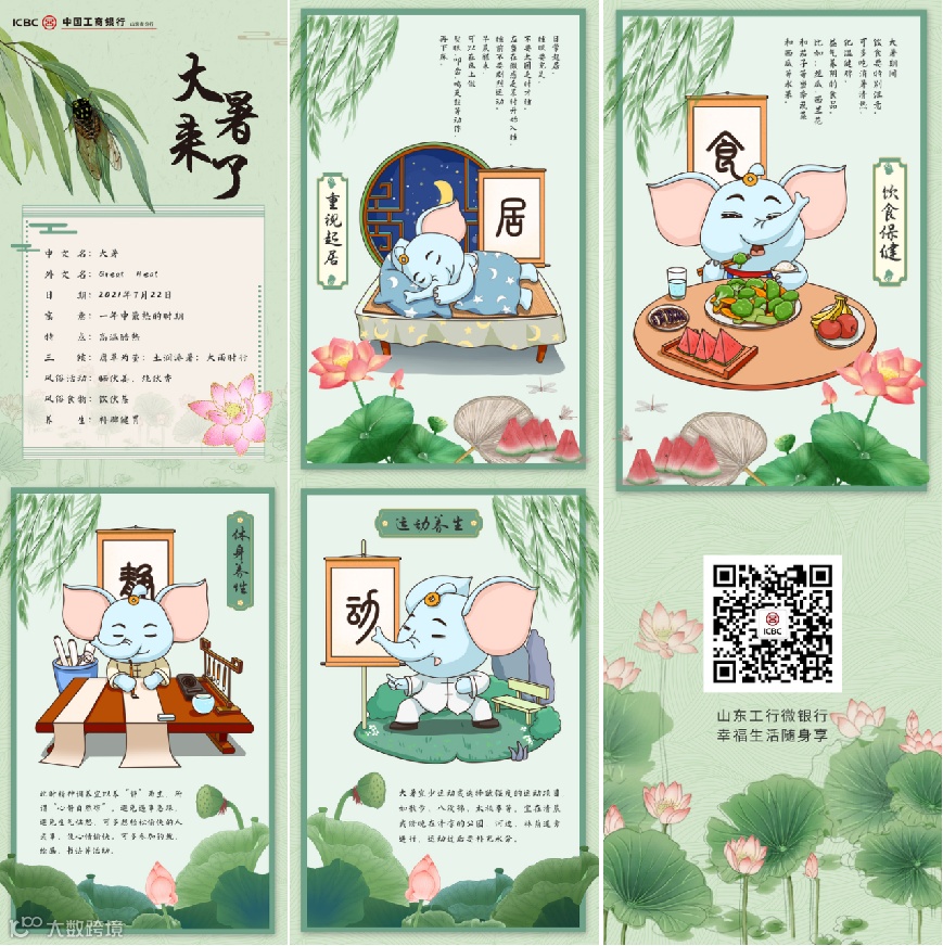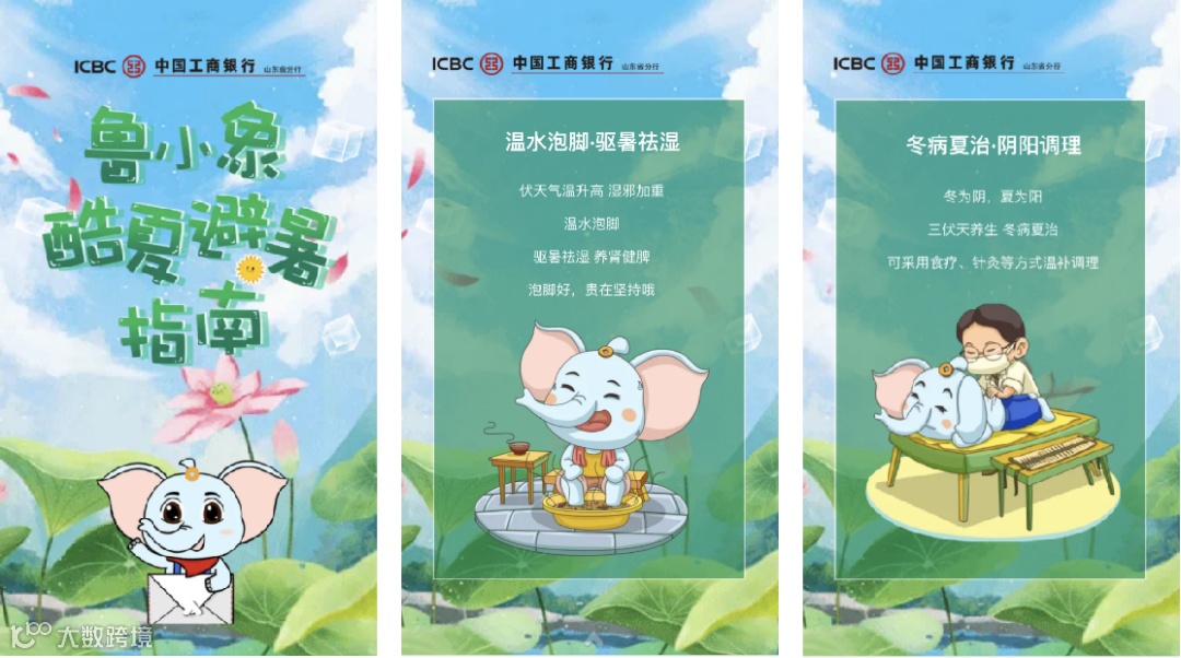鲁小象凭借其可爱生动且富有齐鲁文化特色的形象获得了很多用户的喜爱,并作为主人公出现在“鲁小象讲堂”中,以视频、海报、H5、公众号长图推文等形式代表山东工行微银行向用户解答疑问、推介产品、传递品牌理念。