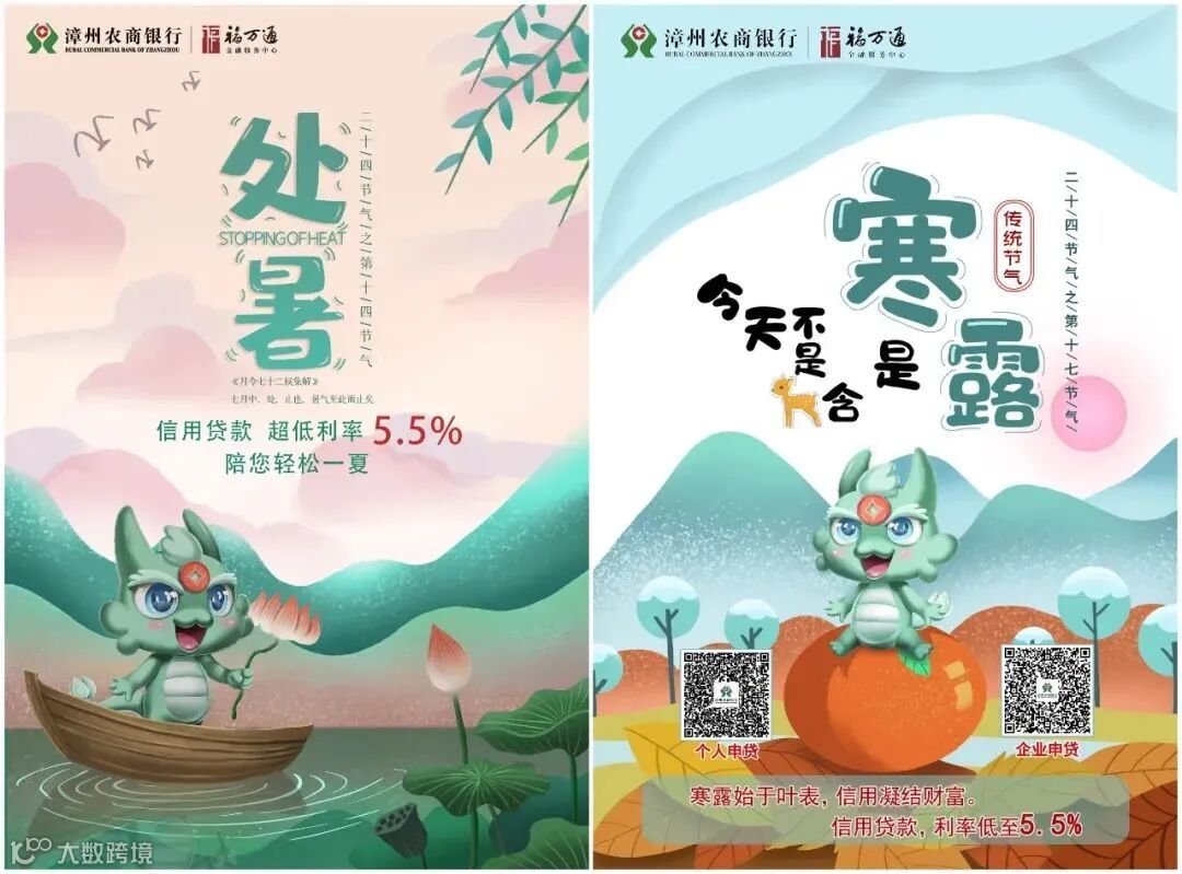 漳州农商银行结合本地文化与精神面貌以及银行经营管理文化的特征,推出了原创IP龙小星,将其运用在线上+线下多场景的宣传中。