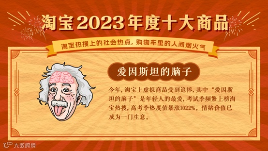 不管是首次入榜的虚拟商品“爱因斯坦的脑子”,还是年初因《狂飙》“翻红”的《孙子兵法》,我们都能通过2023这十件年度商品,观察到一些关于2024年的消费趋势。