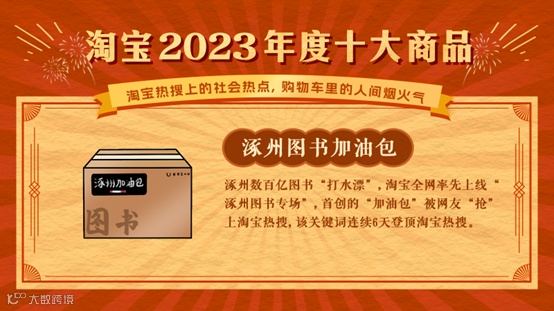 今年,河北涿州洪水导致许多图书出版企业受灾,为此淘宝上线了“涿州图书专场”。上线3天,网友购买了38.5万单“涿州图书加油包”,帮助受灾的涿州图书出版商家。