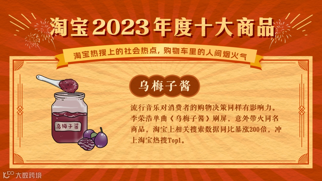 今年 2 月,李荣浩的单曲《乌梅子酱》爆火刷屏,不仅上榜各大社交媒体平台热搜,还登上了淘宝热搜,同名商品相关搜索数据同比暴涨 200 倍。不少商家在商品详情页里配上“浅浅的微笑,吃完甜甜地笑”等花式文案。