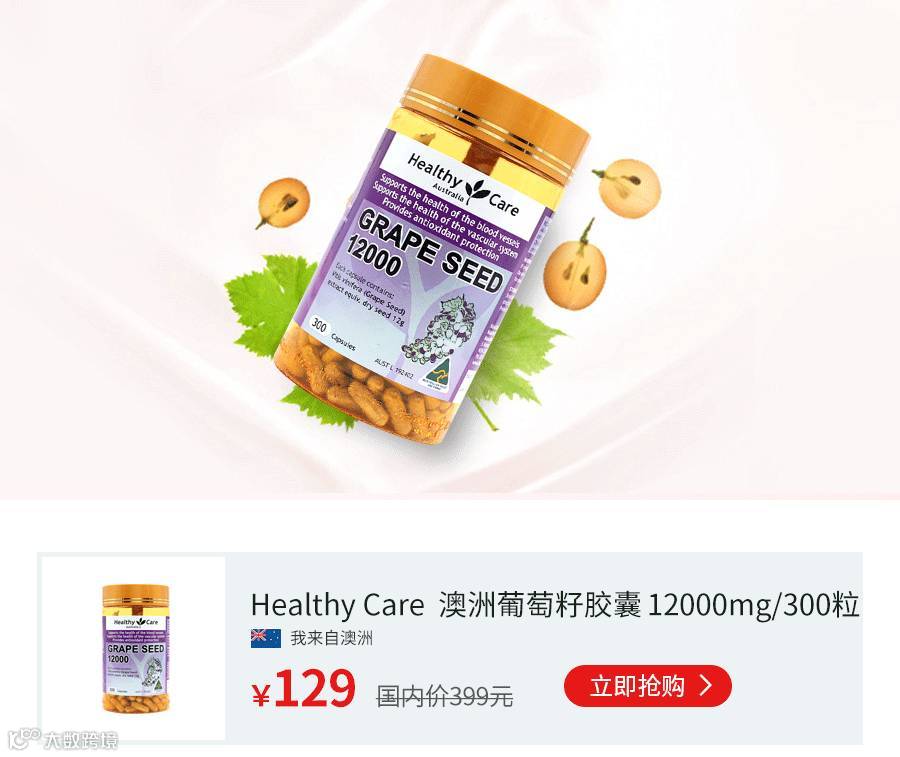 澳洲 Healthy Care葡萄籽胶囊,在国外被誉为“可以口服的化妆品”。葡萄籽OPC抗氧化的奇迹,美容界新宠。