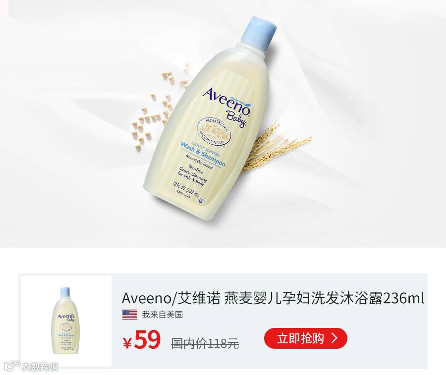 美国儿科专家60多年来一致推荐的优质产品—Aveeno天然燕麦婴儿无泪洗发沐浴二合一。天然燕麦精华,安全温和无刺激。给宝宝从头到脚的呵护。