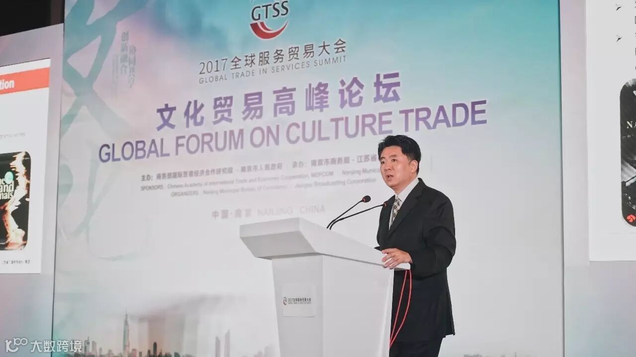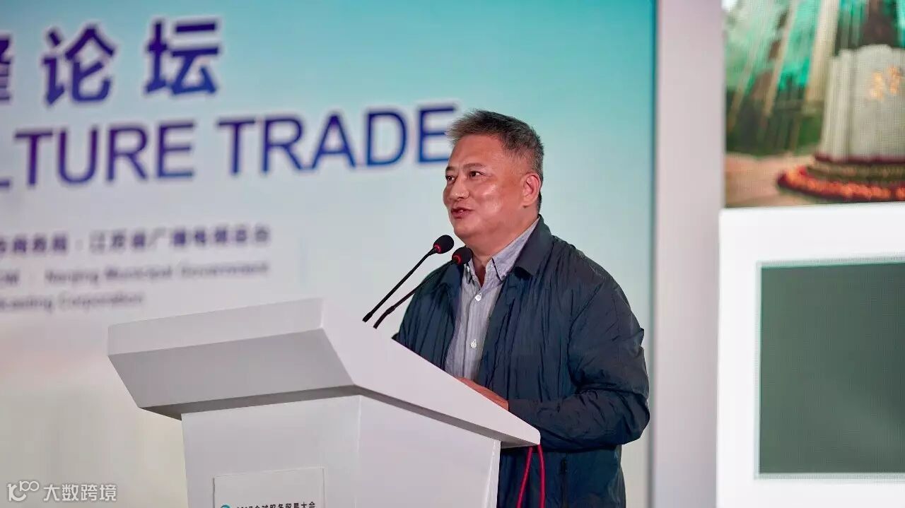 江苏省广播电视总台党委委员兼江苏广电国际传播有限公司董事长任桐重点介绍了江苏广电总台文化贸易发展情况。