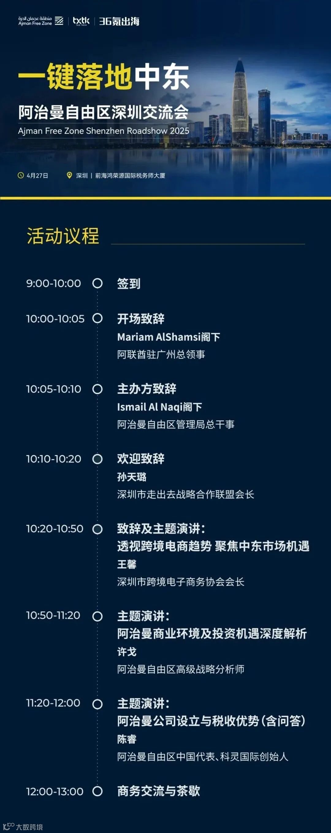 为了更好地帮助中国企业把握当下出海中东机遇,阿治曼自由区、科灵国际及36氪出海主办,阿联酋驻广州总领事馆、政经事(Roadlink GLB)平台、深圳市走出去战略合作联盟等支持的“一键出海中东:阿治曼自由区深圳交流会”拟定于4月27日在深圳举行。此次交流会将深入解析中东市场的发展潜力,全方位展示阿治曼自由区作为企业出海战略据点的独特优势,为中国企业本土落地提供清晰指引。拟参加的企业代表请提前扫码报名。