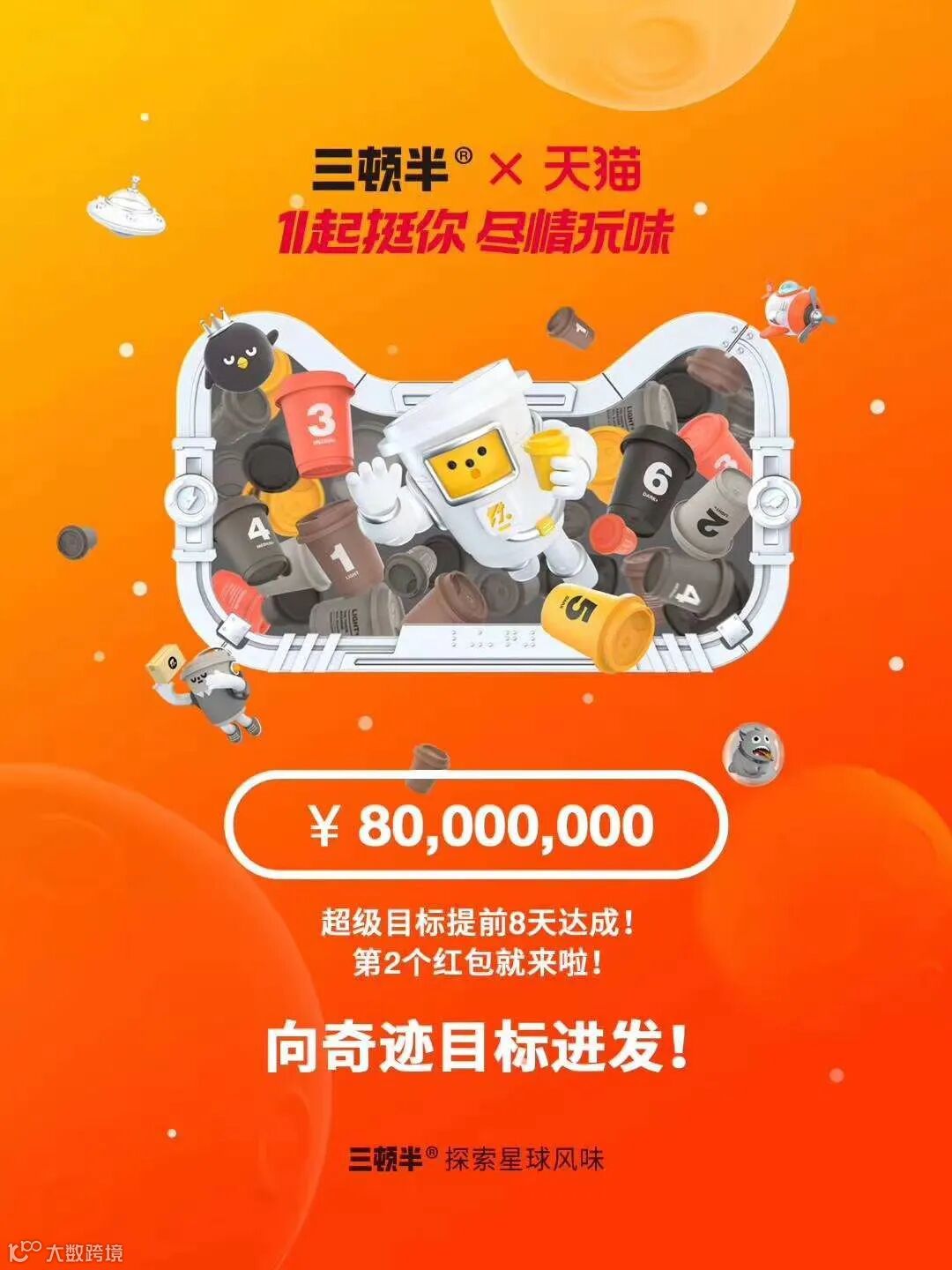 11月1日~3日,咖啡类目同比增长19倍,有品牌目标是比去年翻十倍。
