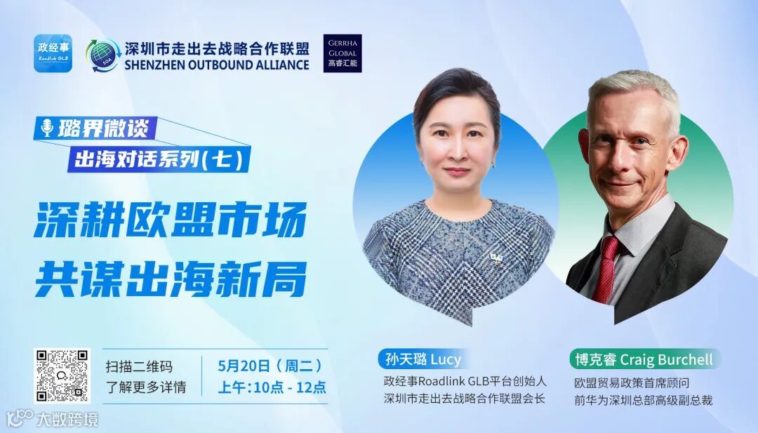 本场直播邀请到GERRHAGLOBAL创始人&CEO、前飞利浦全球市场准入总监、前华为全球公共事务高级副总裁Craig Burchell博克睿,与我平台创始人孙天璐一同进行主题为“深耕欧盟市场·共谋出海新局”的直播对话。