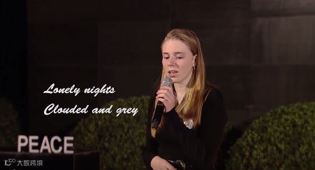 2019年12月13日国家公祭日当晚举行的“烛光祭·国际和平集会”上,来自加拿大的十七岁女孩梅根·布莱迪演唱了一首她为南京这座城市创作的和平之歌——《感同身受》,感动了现场和观看活动网络直播的全球网友。
