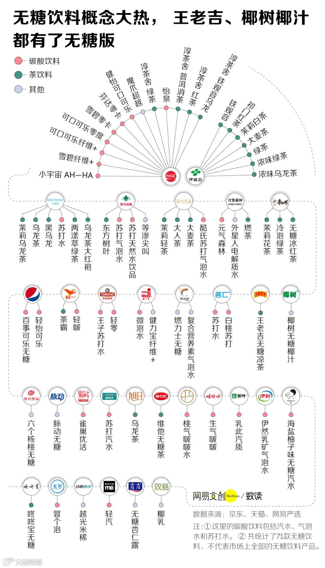 在元气森林以锐不可挡之势掀起0糖饮料波澜后,国内外各大饮料巨头及新品牌都在不断推出新产品加入战局,据不完全统计,市面上如今无糖饮料产品早已超过百余款,并且无糖趋势已经逐步从气泡水蔓延到茶、咖啡、能量饮料等各个细分品类,饮料行业的无糖时代已经拉开了序幕。