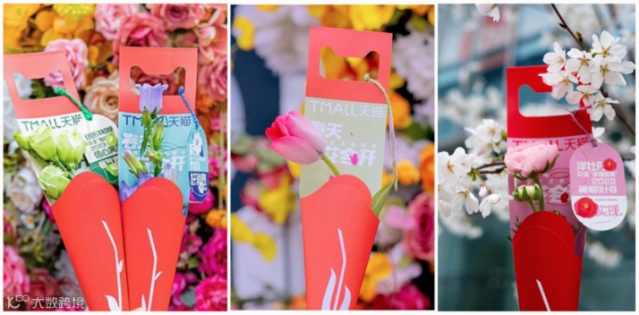 案例简介 :在杭州政府的支持下,天猫将拍摄片场花材二次利用,运用5种不同颜色的花束将「核酸亭」改造为「鲜花亭」,向大众派送春天。