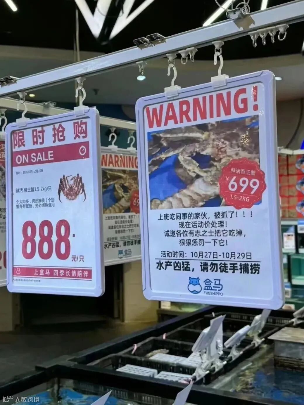 案例简介 :事情起因是网友在盒马拍摄了一段“帝王蟹把它的龙虾同事给吃了”的视频在抖音火了,于是,盒马紧急出了个抑制“恐慌”的警告!如:“引起其他同事普遍性恐慌”“此帝王蟹曾吃掉路过的无辜章鱼,现已被单独圈养”“不慎误食另一只帝王蟹”等。