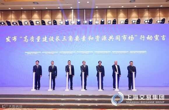 2023年12月28日在上海举办的上海产权和要素市场高质量发展大会上,江苏省产权交易所、浙江产权交易所、安徽省产权交易中心、江苏省公共资源交易中心、浙江省公共资源交易中心、安徽合肥公共资源交易中心、上海交易集团等7家单位共同发布“高质量建设长三角要素和资源共同市场”行动宣言。