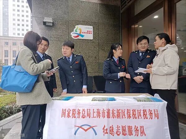 近期,上海市浦东新区外高桥“一键通”企业服务中心处,来自浦东新区税务部门的志愿服务队连续两天开设税费政策咨询台,聚焦纳税人缴费人的“身边税事”,现场答疑解惑,把服务触角延伸到群众和企业“家门口”。