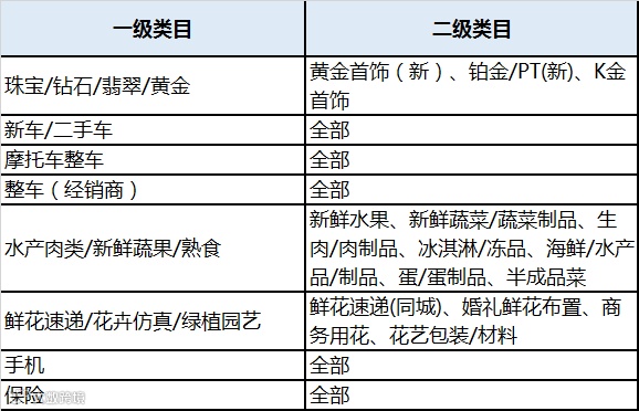 水产肉类/新鲜蔬果/熟食类目由原先的整个一级类目不校验修改为其中的部分二级类目不校验;