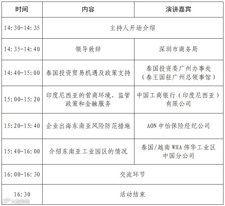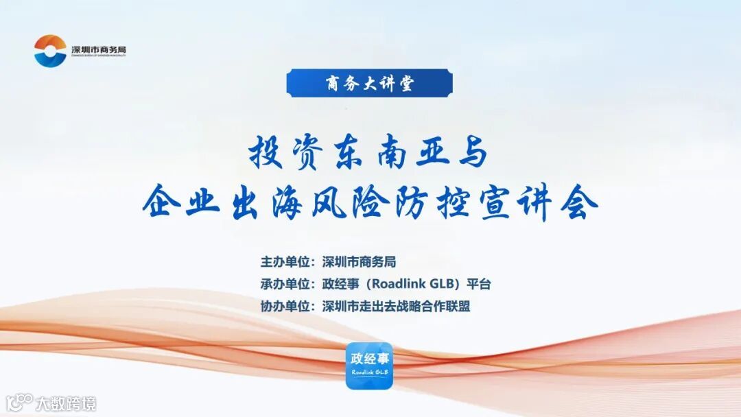 为助力企业拓展东南亚国际市场,加强行业间交流合作,抢抓东南亚投资合作新机遇,由深圳市商务局主办,政经事(Roadlink GLB)平台承办,深圳市走出去战略合作联盟协办的『2025年深圳市商务大讲堂—投资东南亚与企业出海风险防控宣讲会』于2025年8月26日(星期二)下午14:30-16:30,通过线下会场+线上直播方式举行。拟参加的企业代表请提前扫码报名。