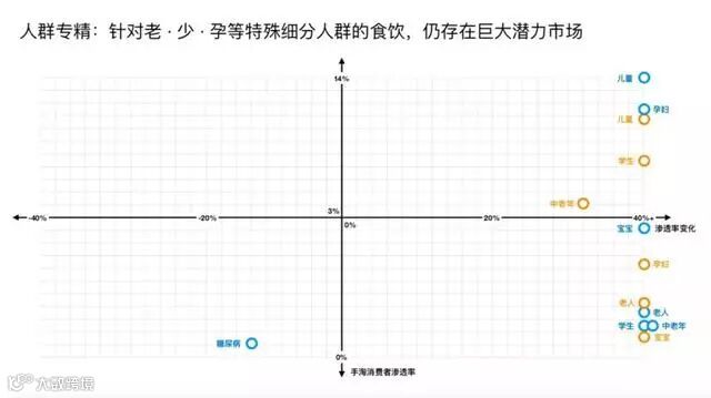 阿里妈妈还发现,针对老人、小儿和孕妇等细分人群的零食饮料,仍存在巨大潜力市场。商家在开发产品和营销时,也要照顾到小众群体的长尾需求。
