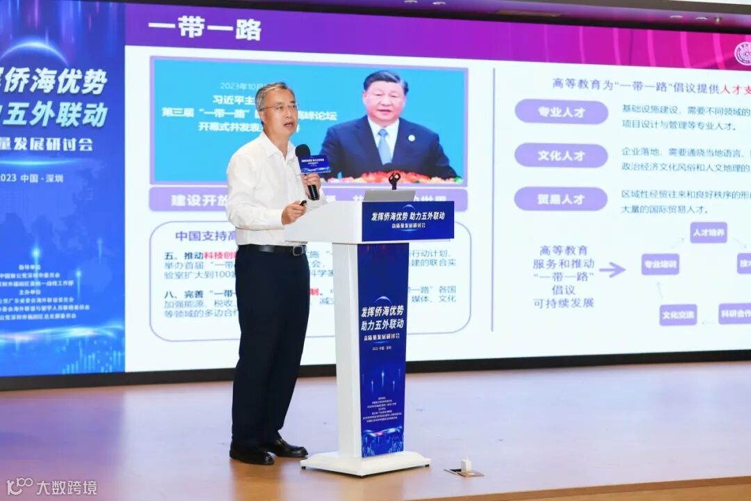 演讲嘉宾畅谈如何优化对外开放布局,打好外贸、外资、外包、外经、外智“五外联动”组合拳,以及如何更好落实深圳市《关于落实“五外联动”推进高水平对外开放的工作方案》。杨浩勃结合调研成果,发表了题为《汇聚侨力助力“五外联动” 推动深圳高水平对外开放》的主旨演讲。之后,致公党广东省经济委副主任、哈工大(深圳)经济管理学院副教授周豫,致公党员、深圳大学管理学院副研究员渠元菊,清华大学深圳国际研究生院党委书记武晓峰,致公党广东省委会社会与法制建设委员会委员、隆安律师事务所高级合伙人贾红卫分别围绕培育贸易竞争新优势、制造业服务外包数字化转型、人才培育与涉外法律等主题发表演讲,共同为打好“五外联动”组合拳提出专业建议。