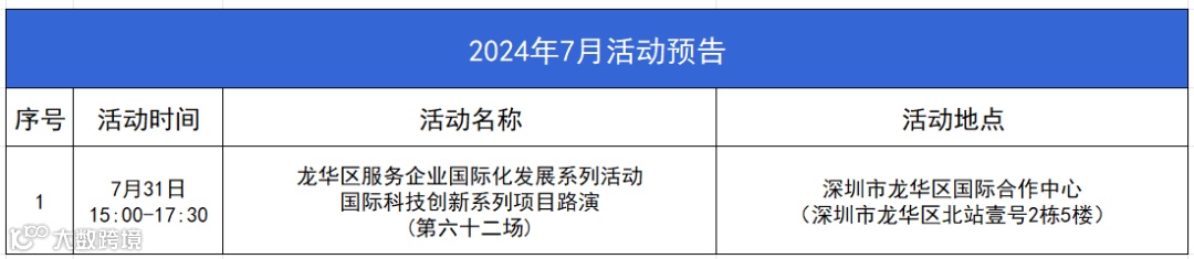 2024年7月31日,由深圳市龙华区国际合作中心主办,政经事(Roadlink GLB)平台承办,深圳市对外经济贸易统计学会、深圳市走出去战略合作联盟、深圳市工业制造业行业协会、深圳前海股权交易中心与深交所科融通V-Next协办的『龙华区服务企业国际化发展系列活动--国际科技创新系列项目路演(第六十二场)』将于深圳市龙华区国际合作中心举办。欢迎有意参加的企业、金融机构与我们联系。欢迎企业、金融机构点击“阅读原文”或扫描下方二维码报名参会。