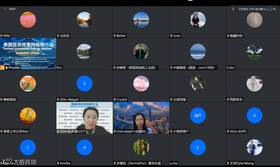 2022年7月5日上午,由泰国投资促进委员会、深圳市走出去战略合作联盟主办,政经事平台(Roadlink GLB)、深圳市工业制造业行业协会支持的『泰国投资政策网络推介会』通过“线上会场”形式顺利举办,参会企业代表近80家企业。