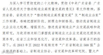关于申报“2023年广东省制造业500强”企业排序发布的通知.docx
