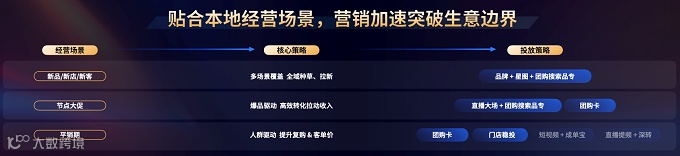 本地行业方面,基于用户兴趣的抖音POI分发已成为新的增长引擎。在新品/新客/新店等拉新场景下,商家可以通过品牌+星图达人加速人群破圈,配合搜索收口承接转化。节点大促场景,商家可以通过团购搜索品专、团购卡促进高效转化。平销期,商家可以运用团购卡和门店稳投来拓展更多本地精准流量。