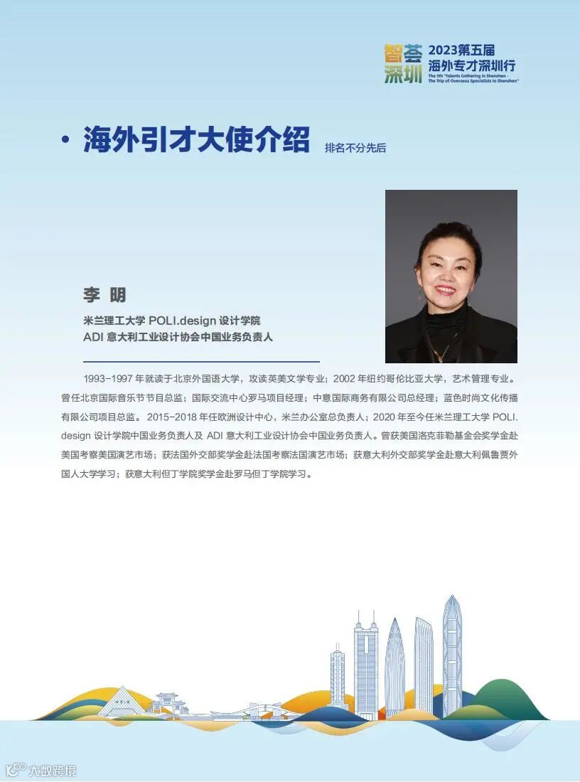 今年1月,福田区委书记黄伟率代表团,赴欧洲多国双招双引,并成功举办2023深圳(福田)-意大利(米兰)合作交流会。会上深圳市走出去战略合作联盟与米兰理工大学POLI.design设计学院签约,共同推动在福田设立“时尚创新中心”,打造国际一流时尚设计教育平台。