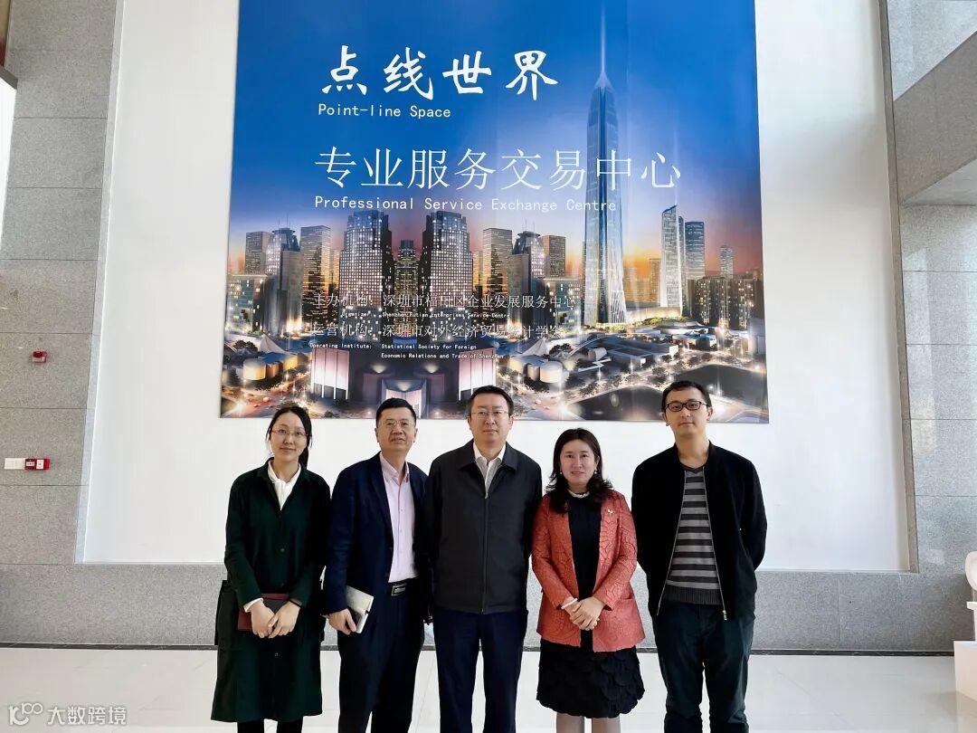 ▲图为深圳市商务局服务贸易处处长王正潮、副处长杨钦忠一行到访合影