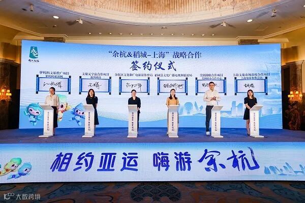当天,余杭区文化和广电旅游体育局、稻城县文化广播电视和旅游局,与驴妈妈旅游网、上海旅游集散总站有限公司等,签署了合作协议。
