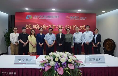 6月7日,南京银行上海分行与大宁集团签署战略合作协议。南京银行上海分行党委书记、行长王慧力,副行长谷丽、孙睿浩,大宁集团党委书记、董事长毛立鹏、集团总会计师王晓丹出席签约仪式。