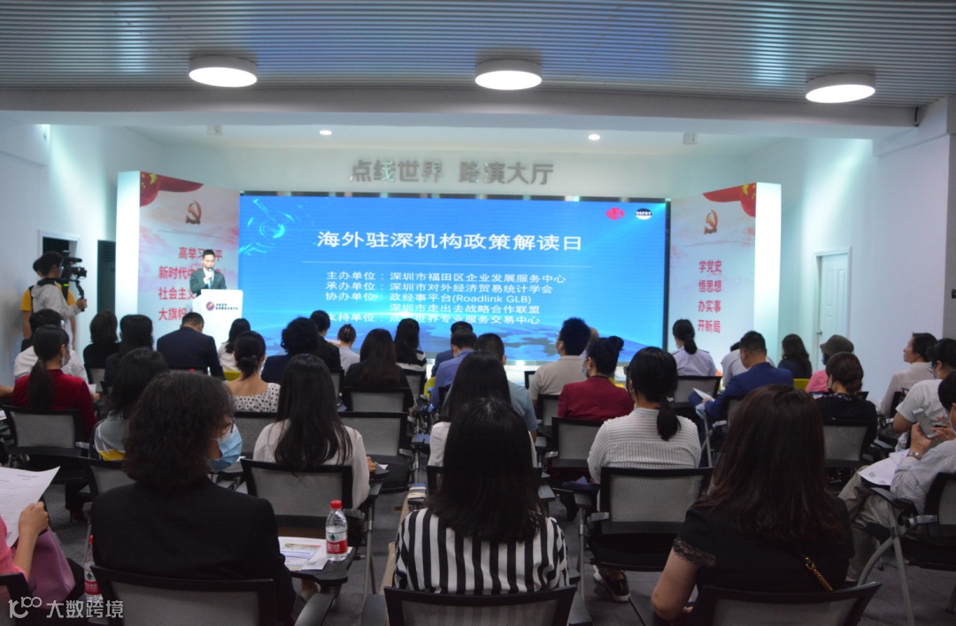 2021年3月30日下午,由深圳市福田区企业发展服务中心主办,深圳市对外经济贸易统计学会承办,政经事平台(Roadlink GLB)、深圳市走出去战略合作联盟协办的『海外驻深机构政策解读日』在福田区点线世界专业服务交易中心顺利举办。