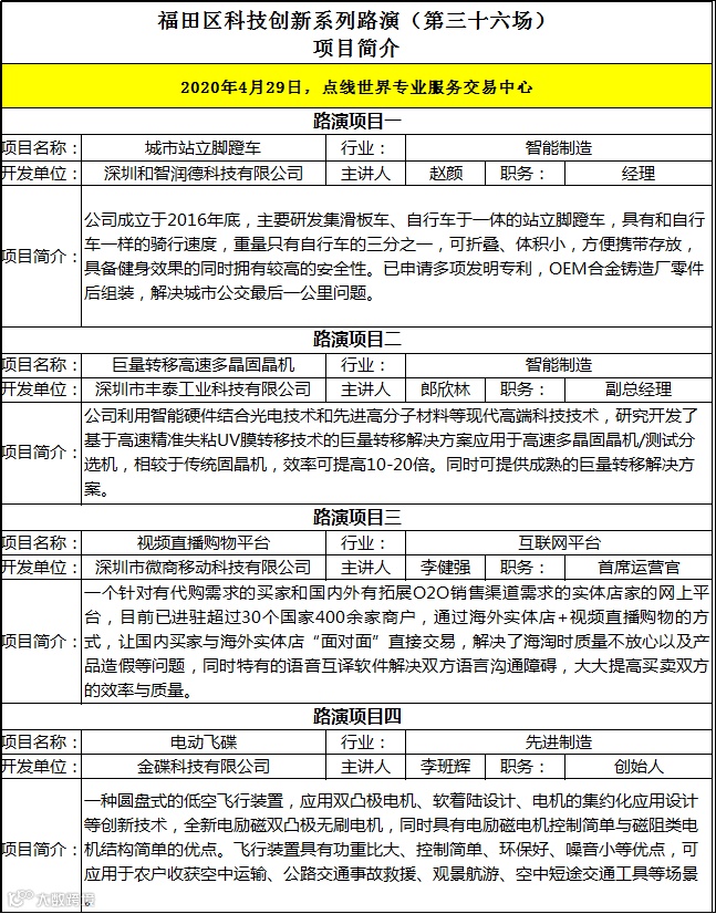 『深圳科技创新系列项目路演第三十七场』将于2020年5月28日举办,欢迎各投资机构及有需求的企业及创新团队随时关注报名并与我平台联系、推荐优秀项目。